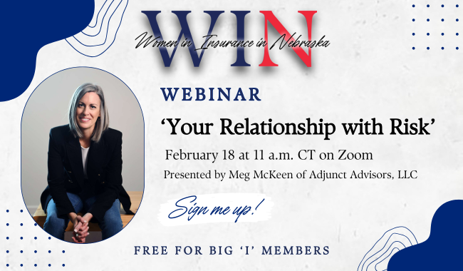 Join us February 18 for the first Women in Insurance in Nebraska (WIN) webinar of the year! This event is part of a series designed to foster networking, idea sharing, and professional development among female peers across the state and nationwide.